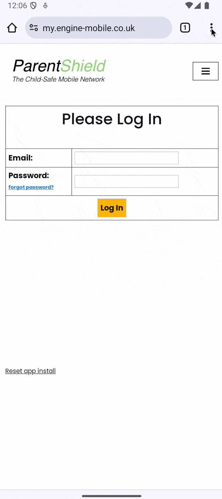 - Navigate to: https://my.engine-mobile.co.uk or open the Portal from the menu at https://parentshield.co.uk