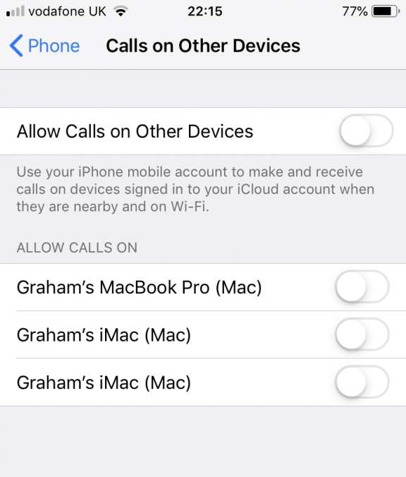Another unexpected consequence of having the same iCloud address for your phone and your child’s phone can be your calls unexpectedly being delivered to your child’s phone and vice versa. You can turn this off in Settings –> Phone –> Calls on other devices, but far better to have different iCloud accounts and be done with it.