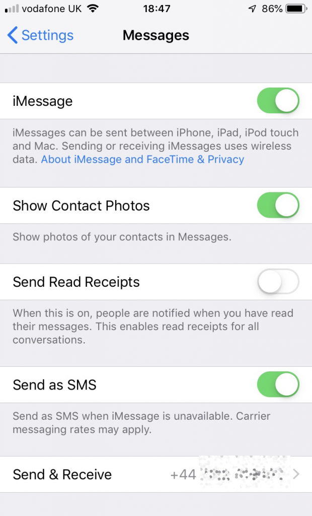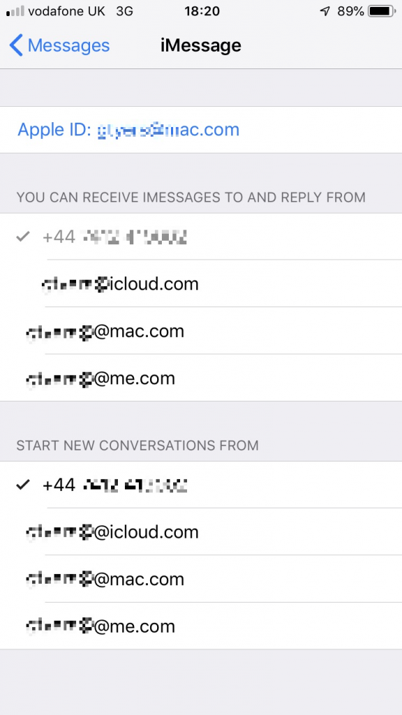 It’s perfectly possible to send and receive messages to both mobile number and email address, but for maximum compatibility, we would set iPhones up to always use the mobile number. Everyone will know your mobile number so uncheck the email addresses for maximum compatibility.